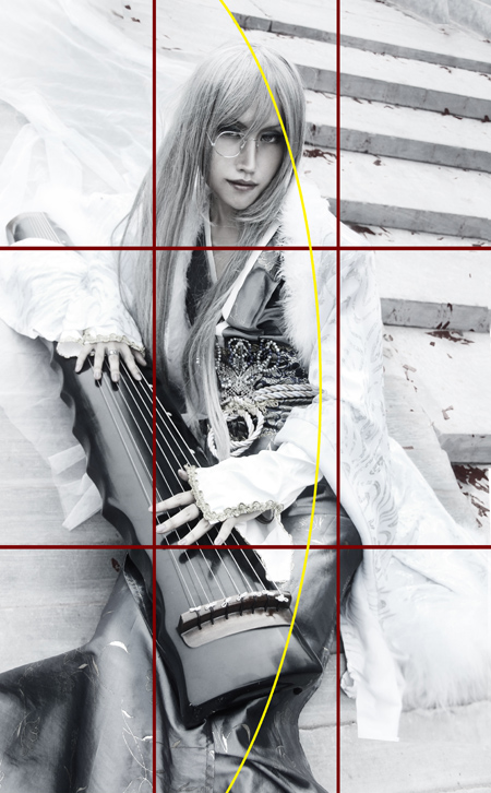 COS摄影时的构图虽然和一般的人像摄影不同,更注重插画感、更具冲突性、角度更夸张,但很多拍摄的基本原则却是相同的。很多同学在拍摄初期一味追求所谓“动漫的感觉”,一味取夸张角度或模仿漫画插画,往往正应了那句话——“还没学会走路就想跑”,结果往往是摔跟头,拍得不伦不类,白白浪费了华丽丽的服饰道具和COSER的感情。